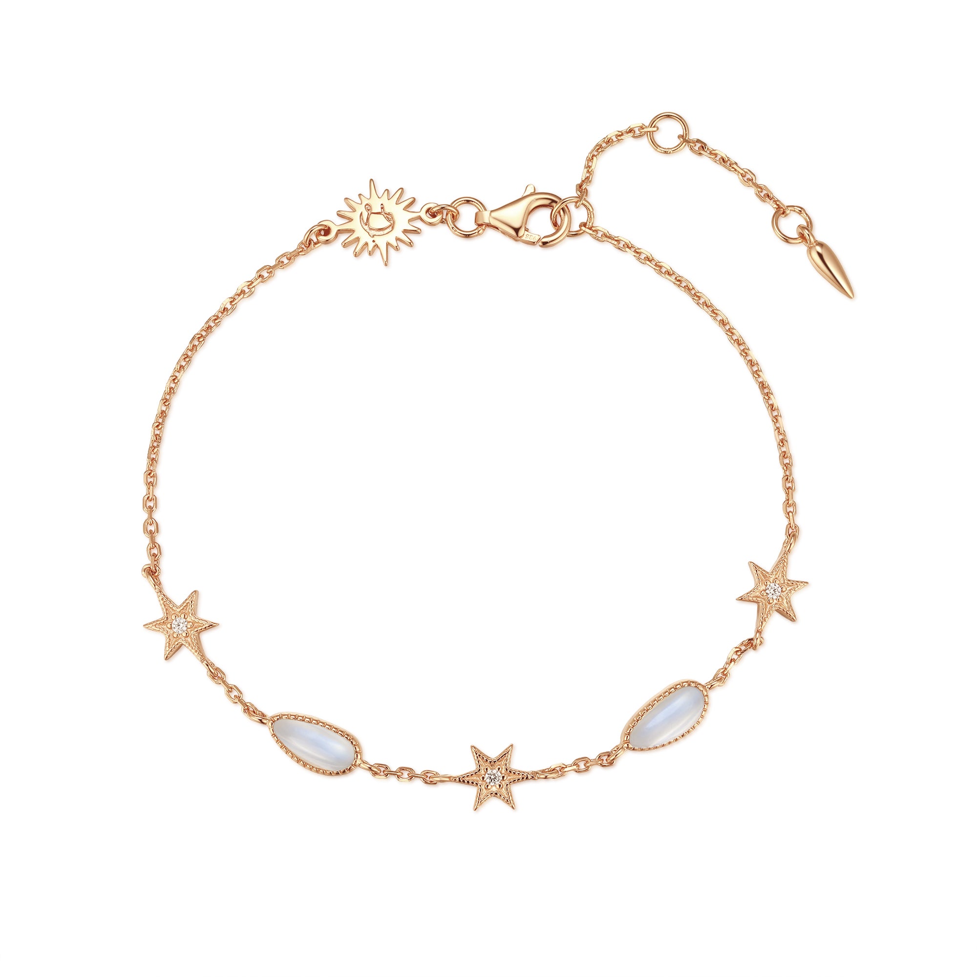 Embrace the enchanting allure of our star bracelet featuring luminous moonstones and sparkling stars, the birthstone of June has healing power and symbolizes a new beginning. This romantic design captures the whimsy of a magical night. A perfect keepsake for those who cherish special moments and seek to celebrate their unique stories.