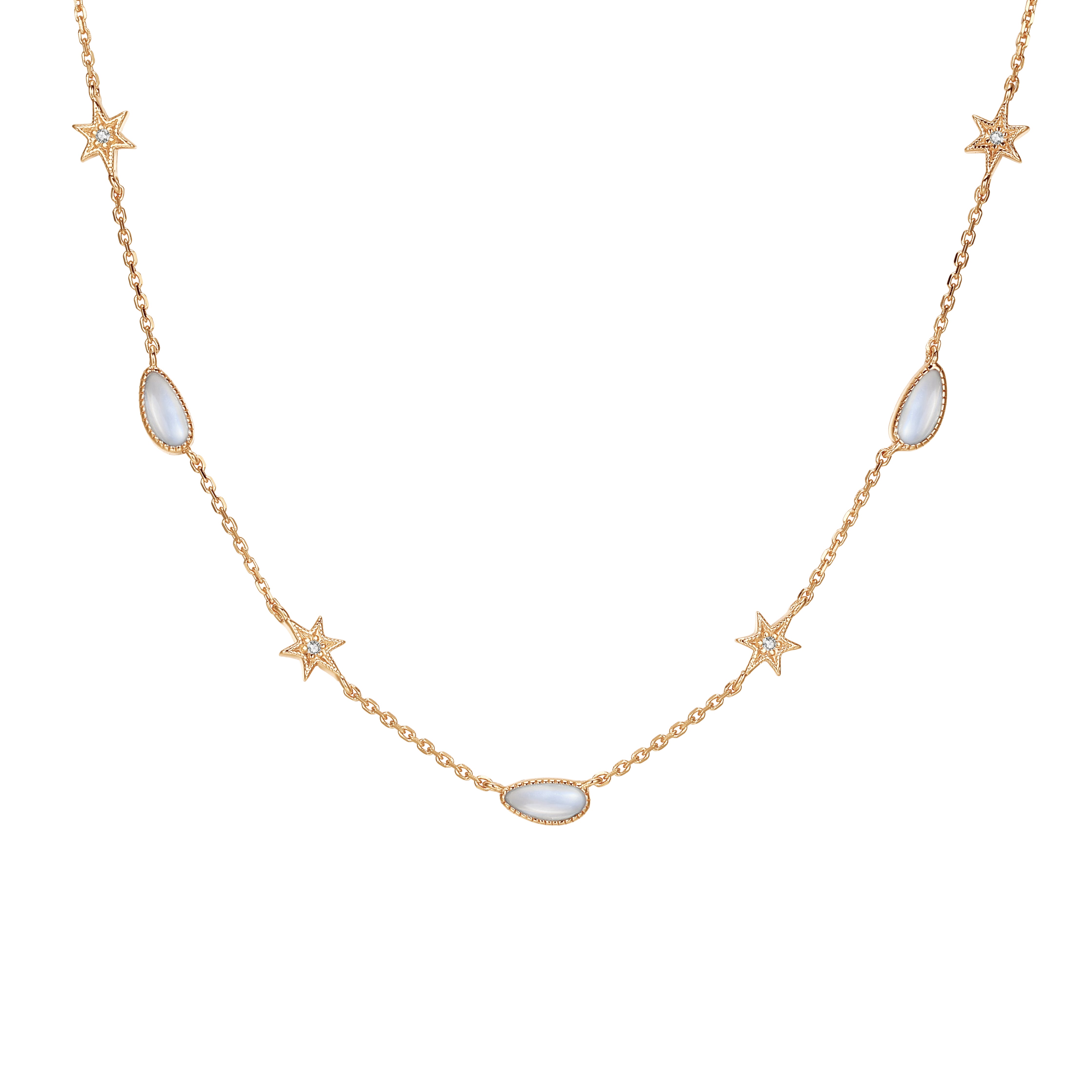 Embrace the enchanting allure of our star choker featuring luminous moonstones and sparkling stars, the birthstone of June has healing power and symbolizes a new beginning. This romantic design captures the whimsy of a magical night. A perfect keepsake for those who cherish special moments and seek to celebrate their unique stories.
