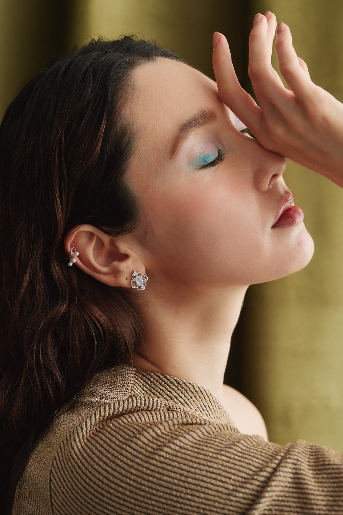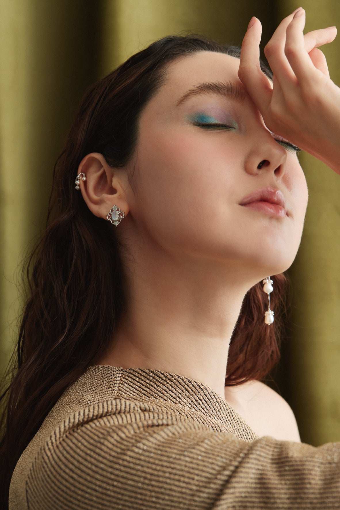 At the center lies a luminous oval moonstone, and gracefully dangled with baroque pearls, capturing the essence of serene beauty. These June's birthstones are symbols of new beginnings, inspiration, intuition, and love, illuminating your path as you step into a new chapter of life.