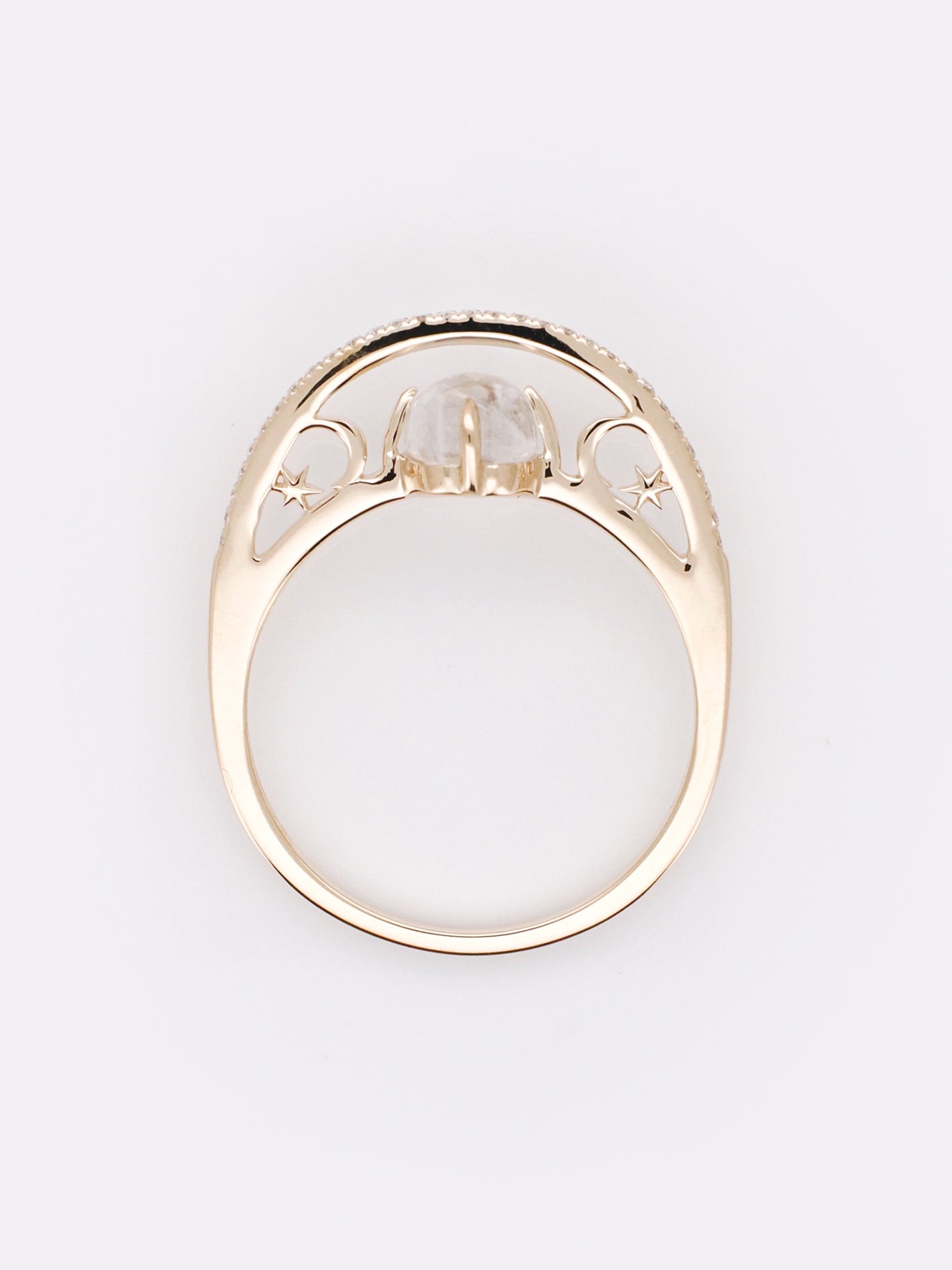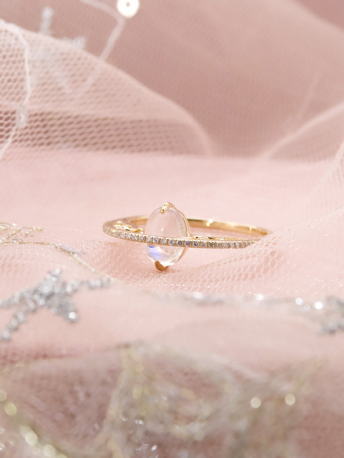14K Yellow Gold Moonstone & Diamond Ring - Saturn