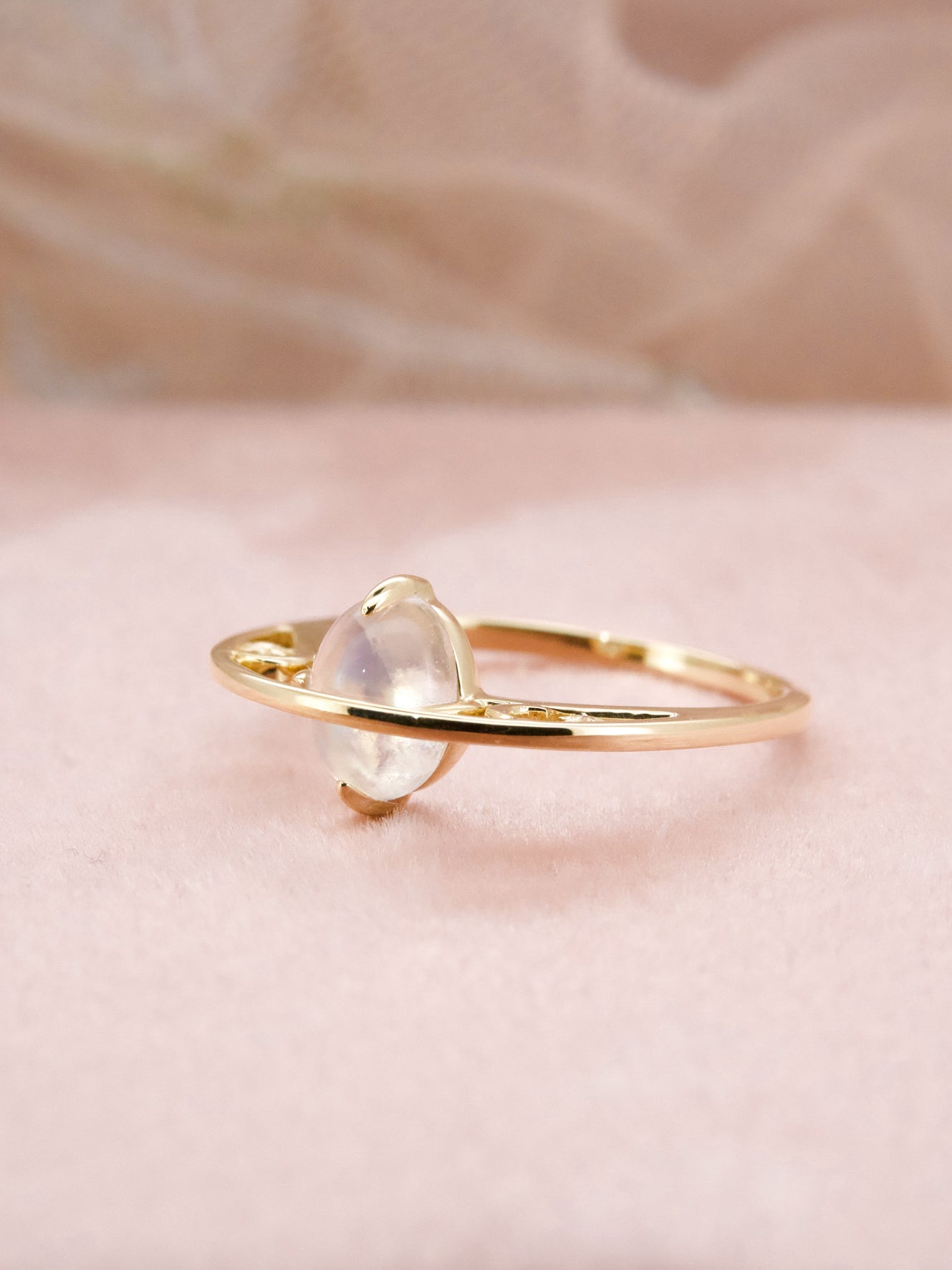 14K Yellow Gold Moonstone Ring - Saturn