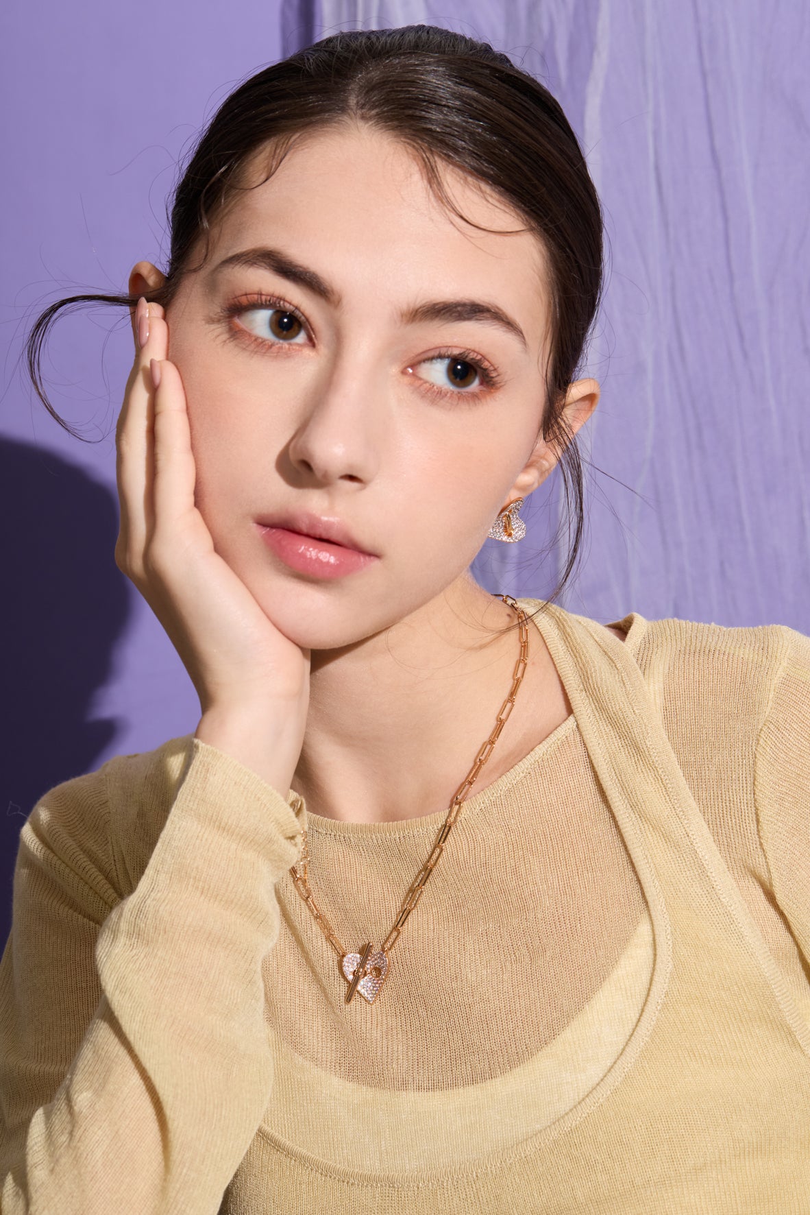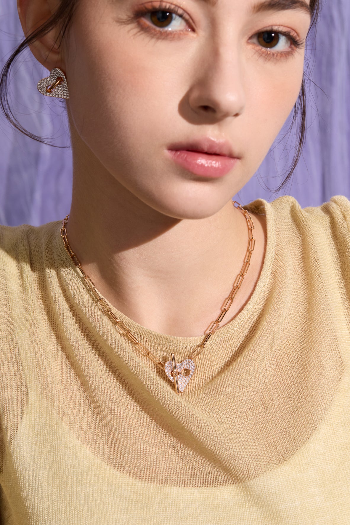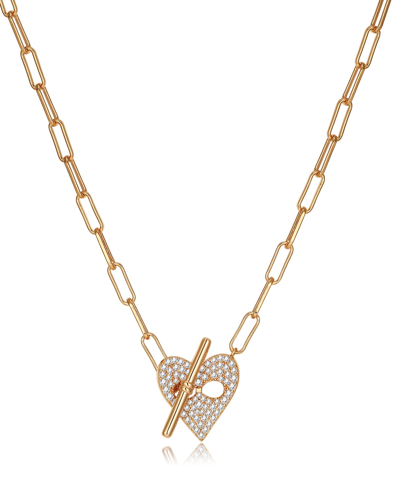 This heart-shaped button chain necklace extends this beautiful ritual to every bond in life. Adjustable length and lavishly paved with brilliant CZ stones, capturing dazzling radiance in every play of light. Wear it as a cherished token of love and entrusted affection every day.