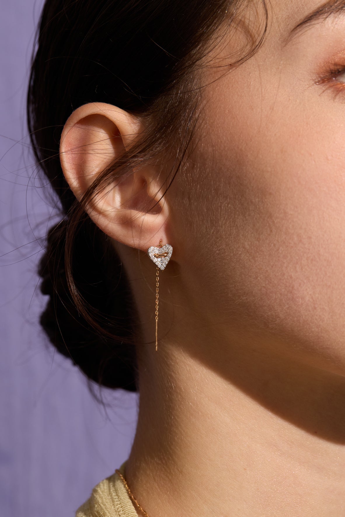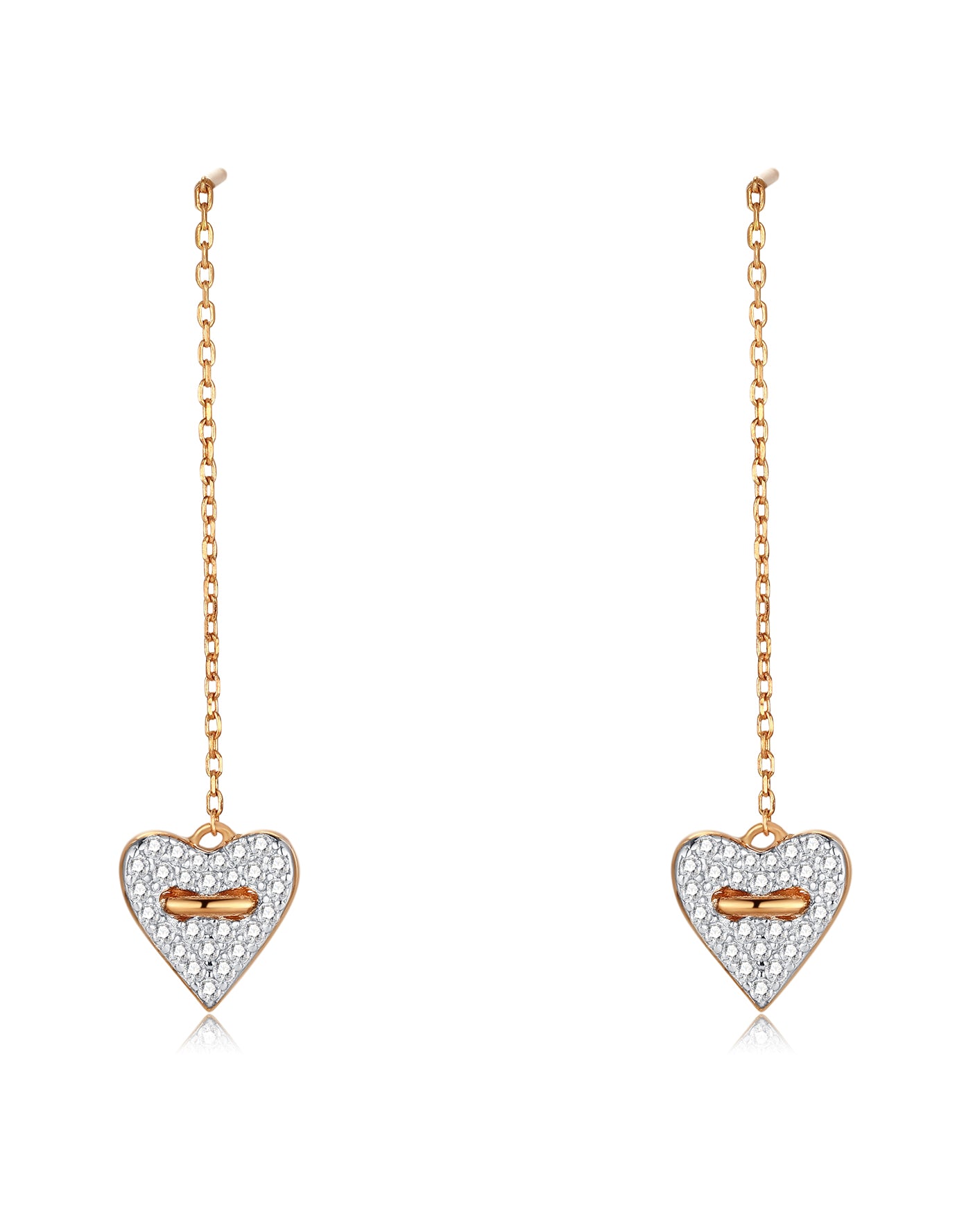 These two-tone heart-shaped button thread earrings extend this beautiful ritual to every bond in life. Adjustable length and lavishly paved with brilliant CZ stones, capturing dazzling radiance in every play of light. Wear them as a cherished token of love and entrusted affection every day.