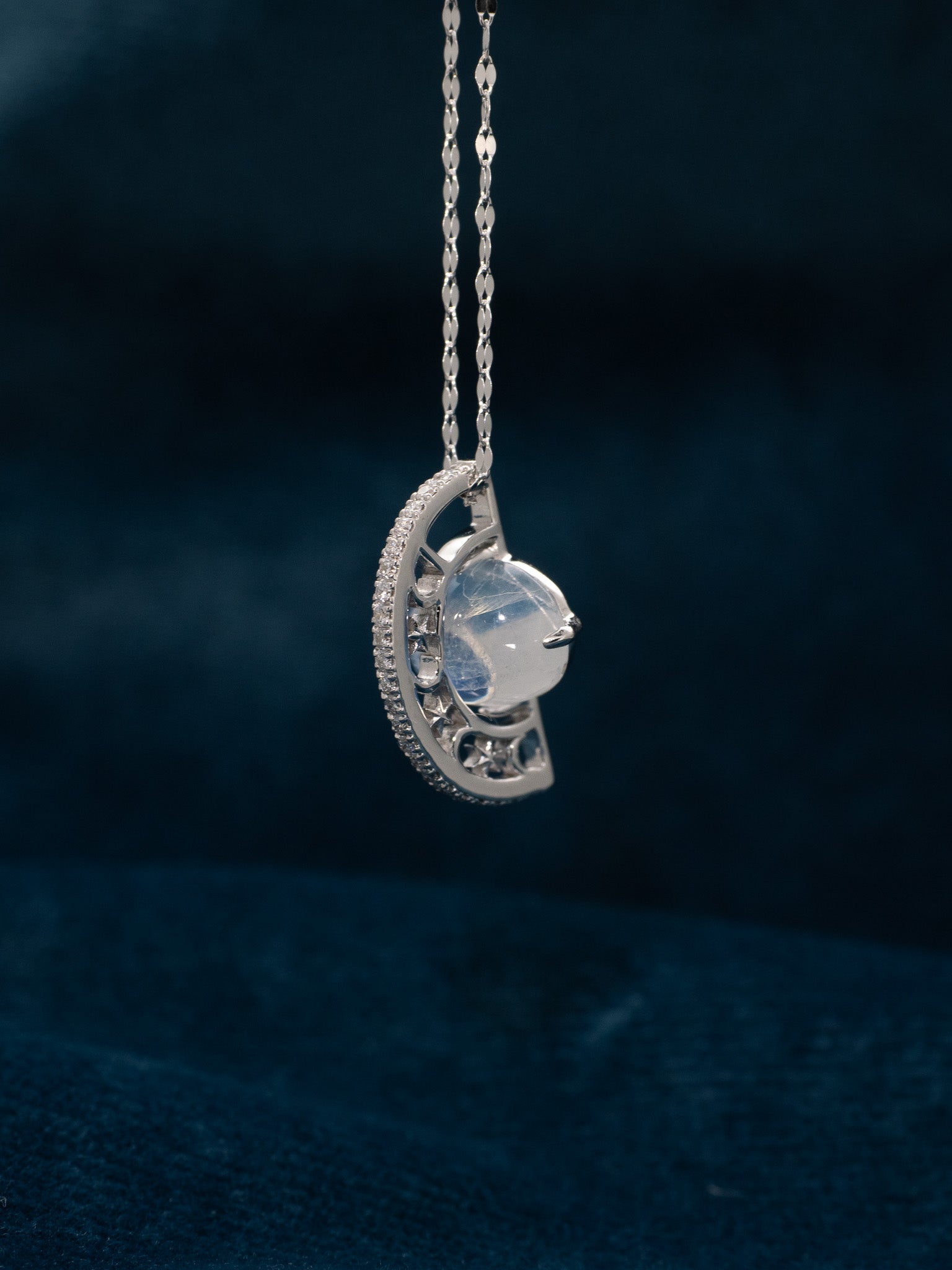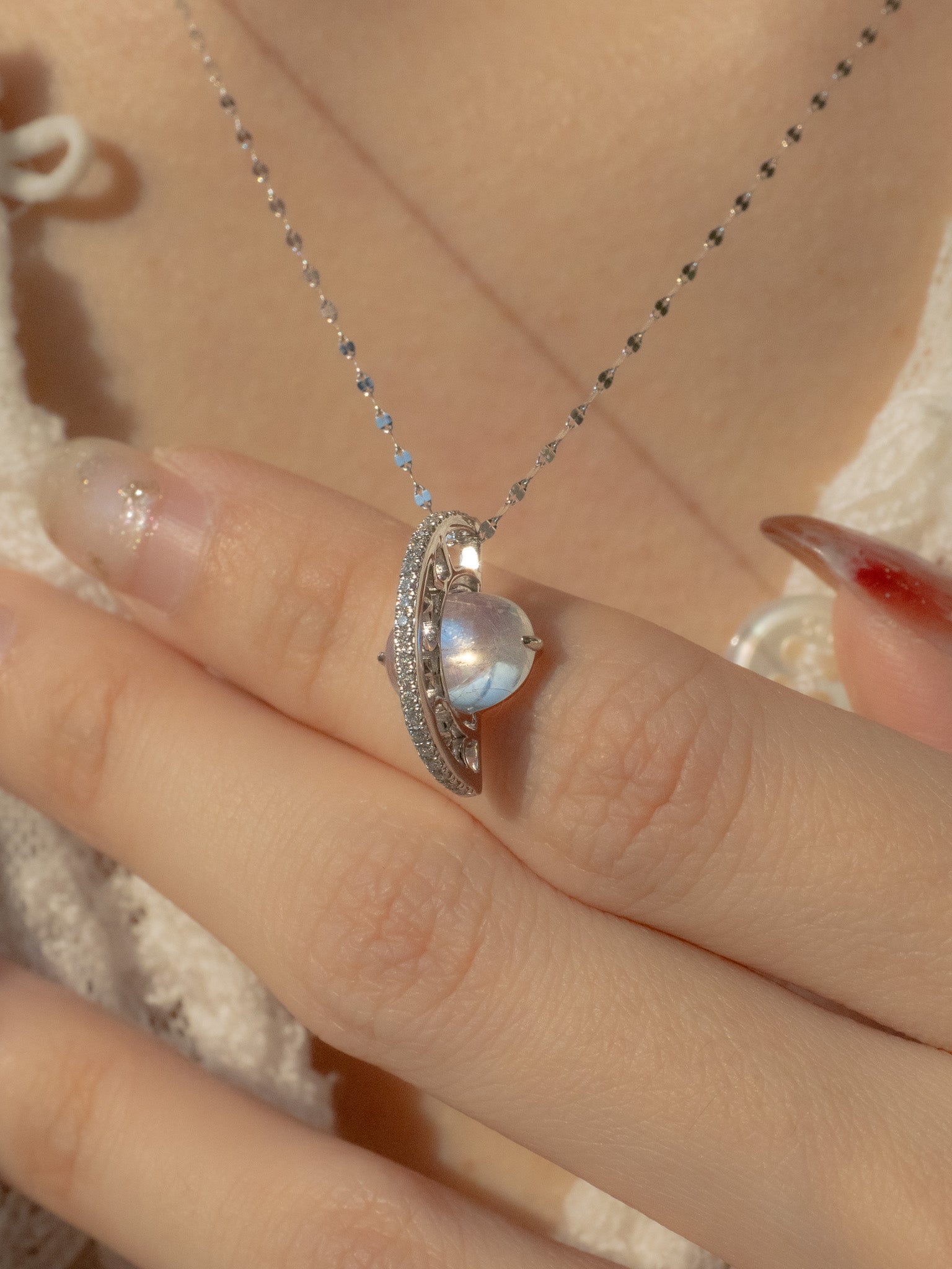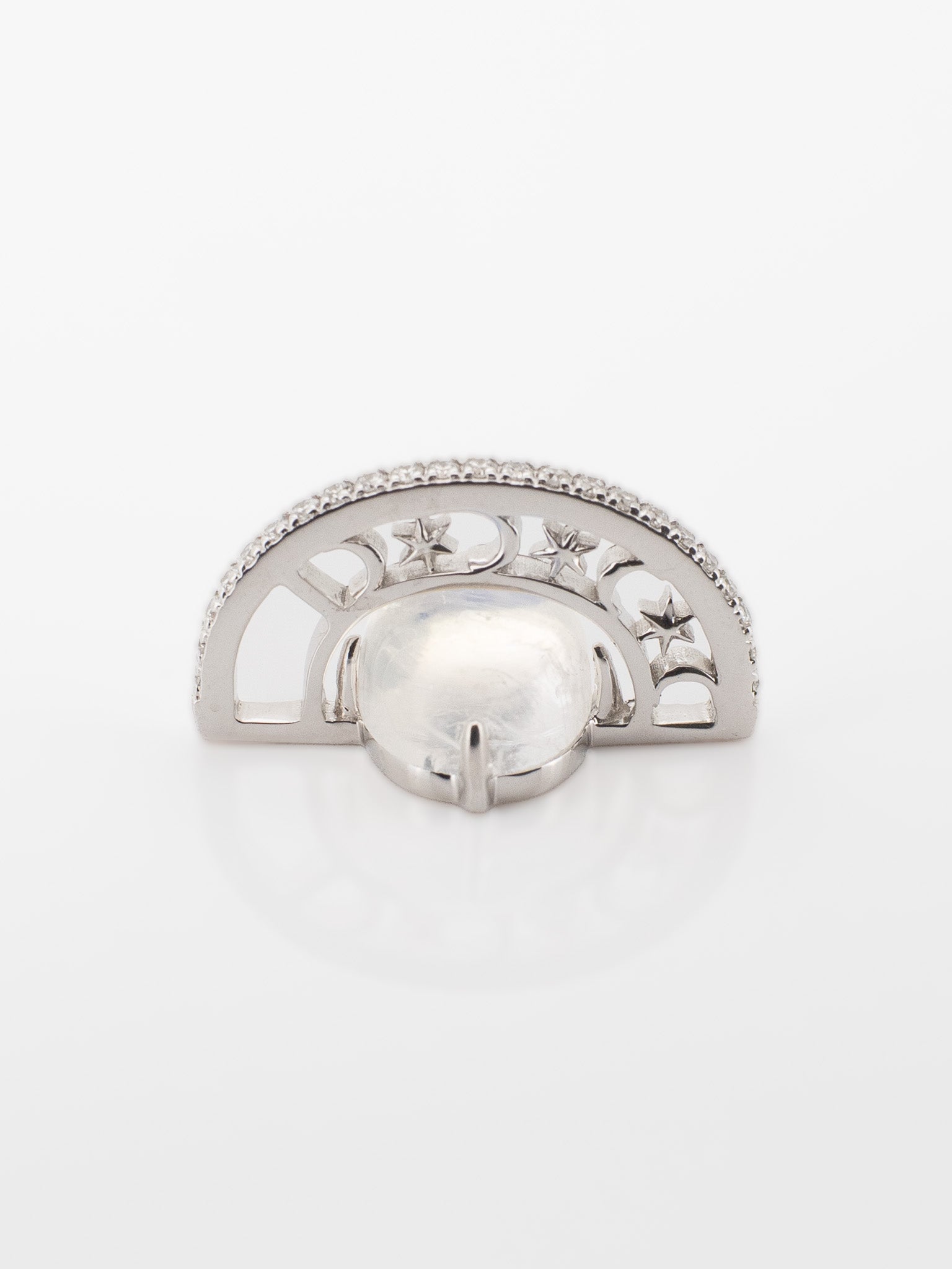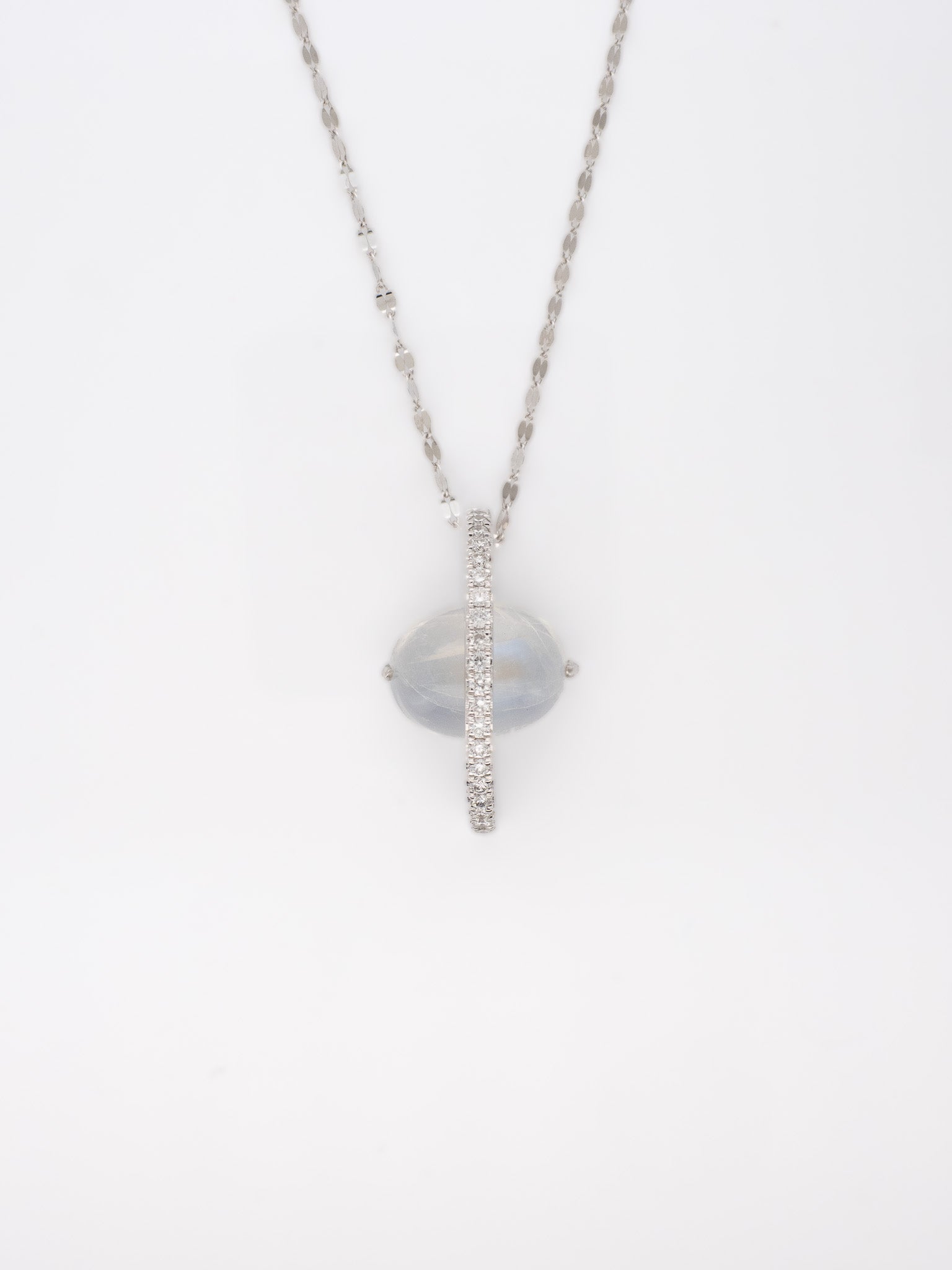 14K White Gold Moonstone & Diamond Pendant - Saturn