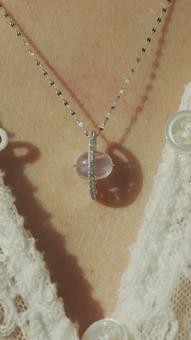 This Saturn-inspired pendant is crafted in radiant 14K gold and centers on a cabochon moonstone—the June birthstone. A pave diamond bar mimics Saturn’s rings, while a hidden star and moon engraving on the side invite you to explore the beauty within. A celestial symbol of inner glow and cosmic connection.