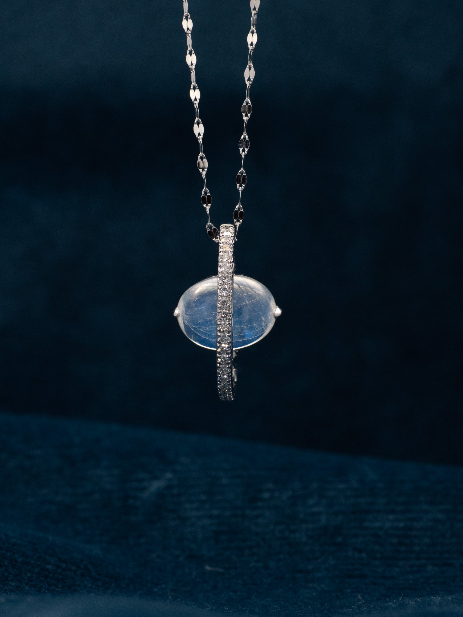 ✦ Moonstone (2.4ct) | Natural Diamond (Total 0.12 carat) SI1/2