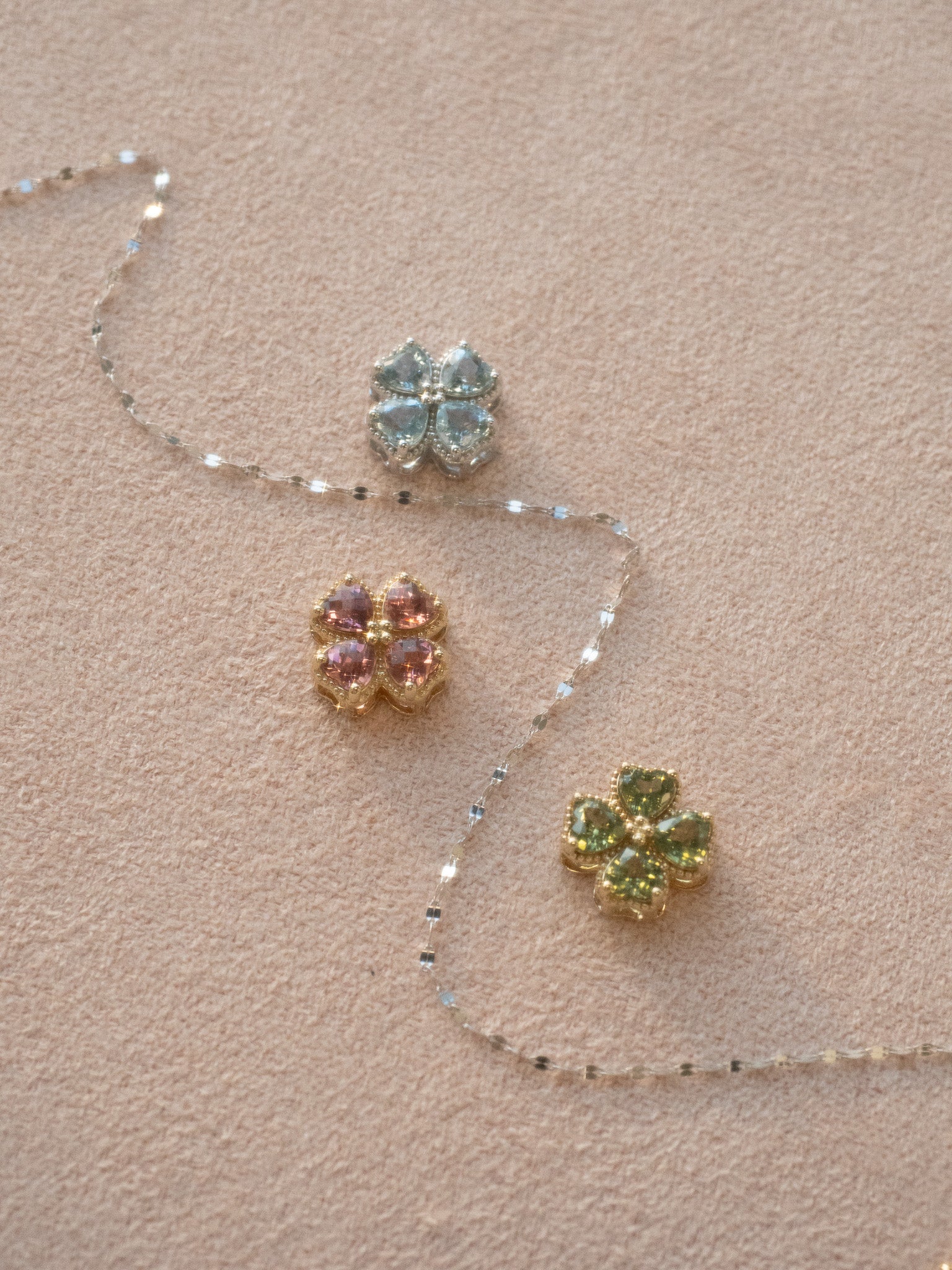 Our pendant captures that rare magic with four heart-shaped Pink Tourmaline. Known for symbolizing self-love and nurturing feminine energy, these gems let you keep your good luck close, always.