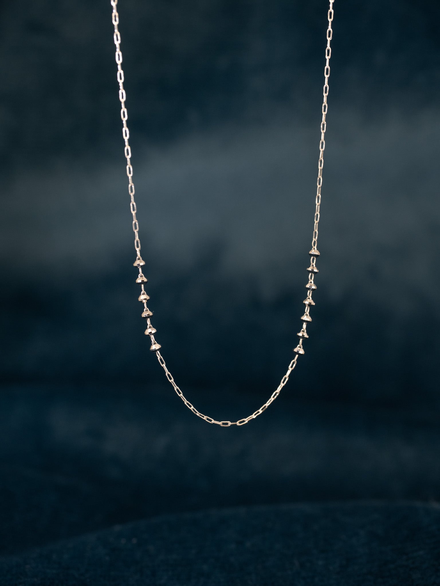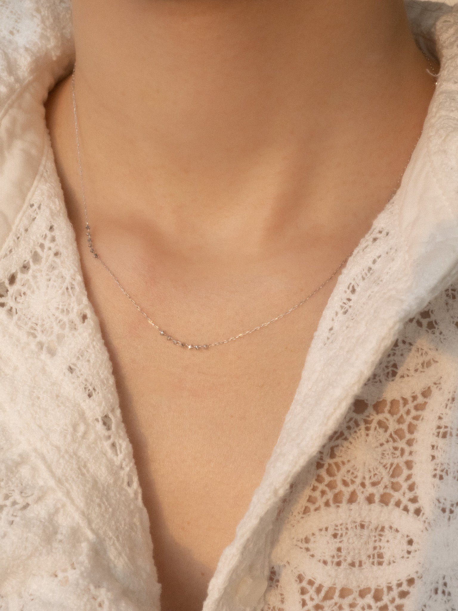 18K White Gold Diamond-Cut Bead Necklace - Eva