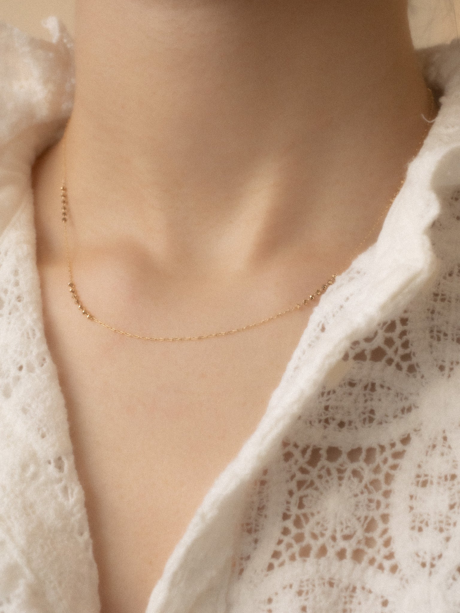 Add a touch of elegance with this piece, crafted by our trusted supplier in Japan. Featuring diamond-cut gold beads that sparkle brilliantly, its dainty design provides a low-key luxurious finish to your ensemble.