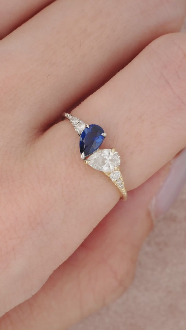 Please specify your ring size and which side is yellow gold and which is white gold in order note / Lab-Grown Sapphire +HK$360 / Iolite