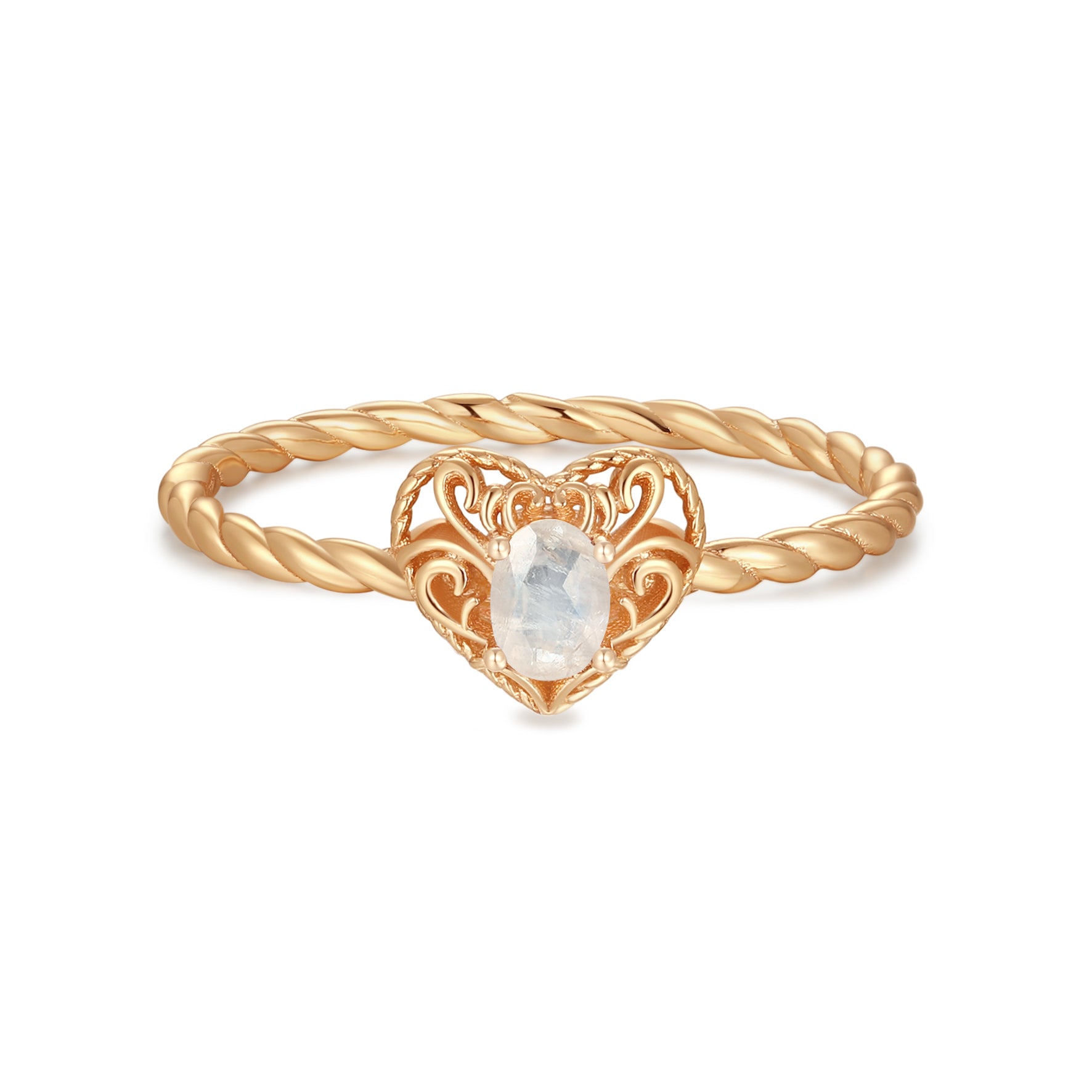 この七夕スペシャルエディションリングは、6月の誕生石であるムーンストーンをあしらっています。ムーンストーンは、新たな始まり、インスピレーション、直感、そして愛を象徴しています。この優美なリングはハート型にデザインされ、永遠のロマンスを想起させます。繊細なカットアウトを施したフィリグリーフラワーのディテールが、ハートの女王の気品と、咲き誇る花園の静謐な魅力から巧みにインスピレーションを得て、表面を舞い踊るように彩られています。