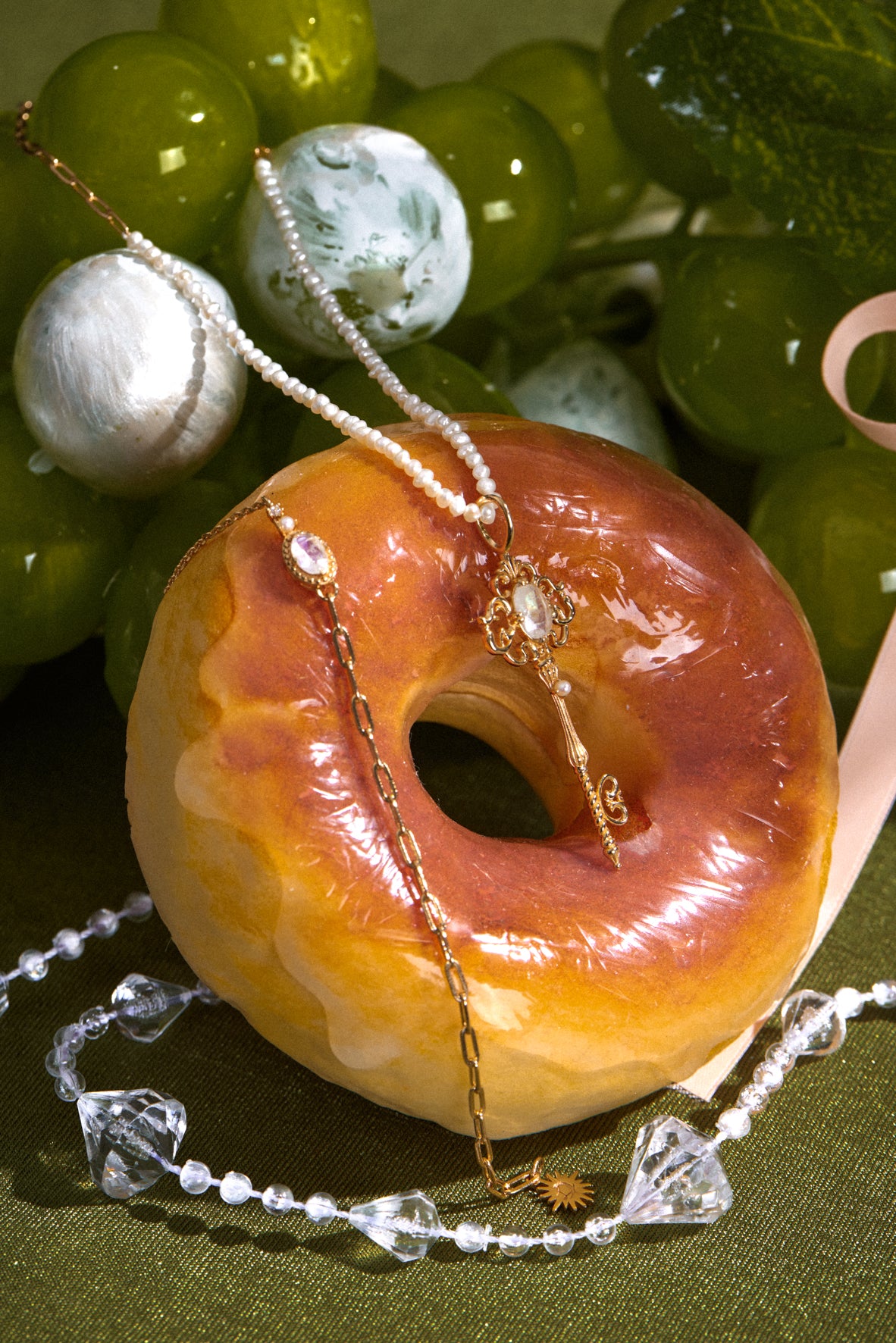 ムーンストーン&パール ゴールドキーペンダント - 魅惑