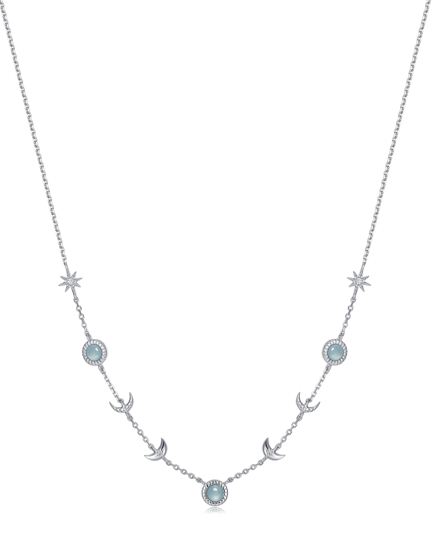 Blue Chalcedony Silver Moon Phases Choker - Luna