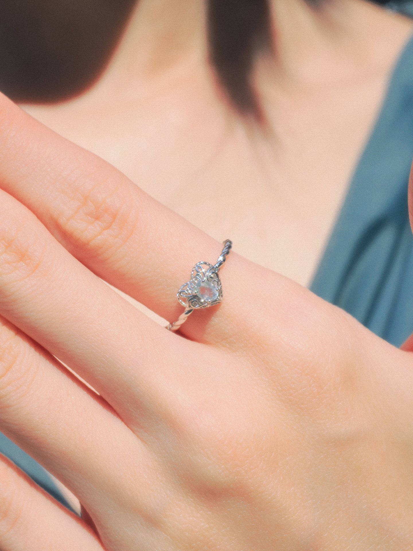 この七夕スペシャルエディションリングは、6月の誕生石であるムーンストーンをあしらっています。ムーンストーンは、新たな始まり、インスピレーション、直感、そして愛を象徴しています。この優美なリングはハート型にデザインされ、永遠のロマンスを想起させます。繊細なカットアウトを施したフィリグリーフラワーのディテールが、ハートの女王の気品と、咲き誇る花園の静謐な魅力から巧みにインスピレーションを得て、表面を舞い踊るように彩られています。