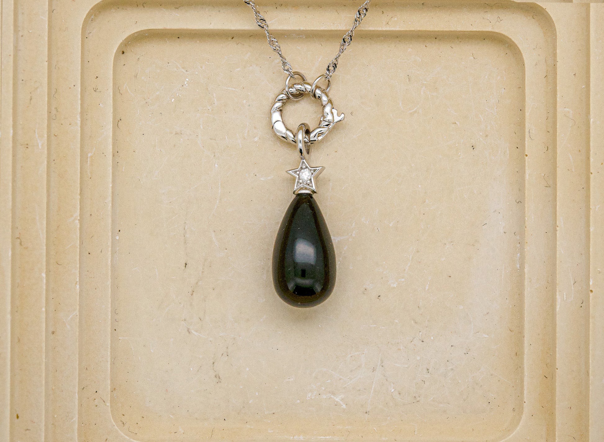 Our new horseshoe clasp lets you be effortlessly creative. Simply unscrew the pin to release your pendant, slide on your chosen chain, and secure it back