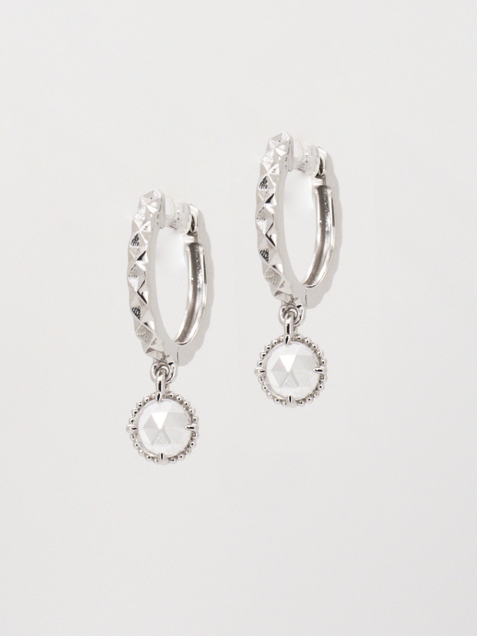 14K White Gold Rose Cut Diamond Huggie Hoop Earrings - Ethereal