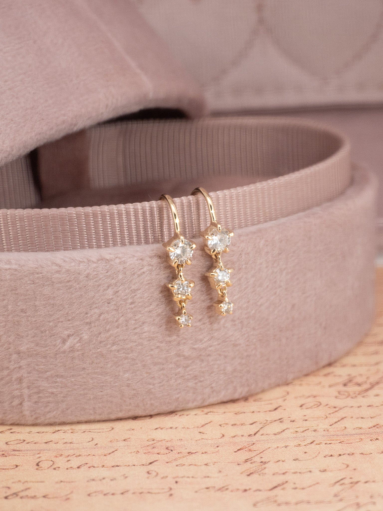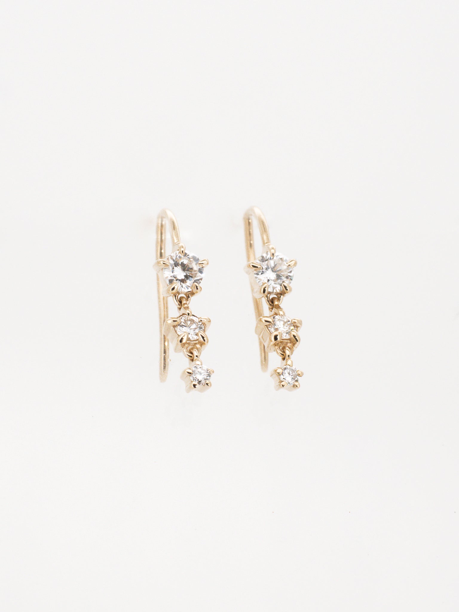 Adorn yourself with elegance and grace with our 14K gold trinity earrings. Featuring three lab-grown diamonds on each side, the stones are gracefully arranged from largest to smallest. They sit delicately on your ear, radiating dazzling brilliance with every movement. Perfect for everyday wear or special occasions.