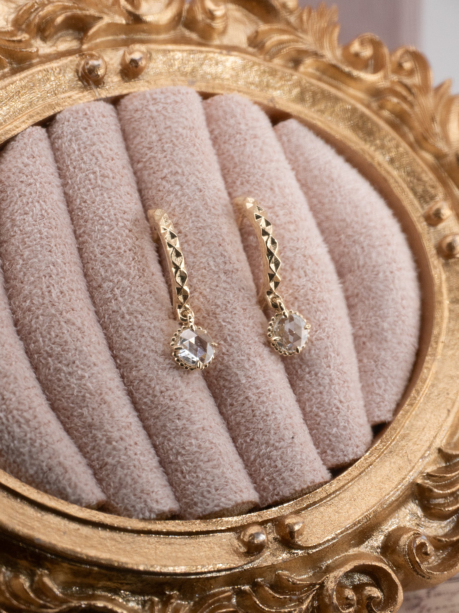 14K Yellow Gold Rose Cut Diamond Huggie Hoop Earrings - Ethereal