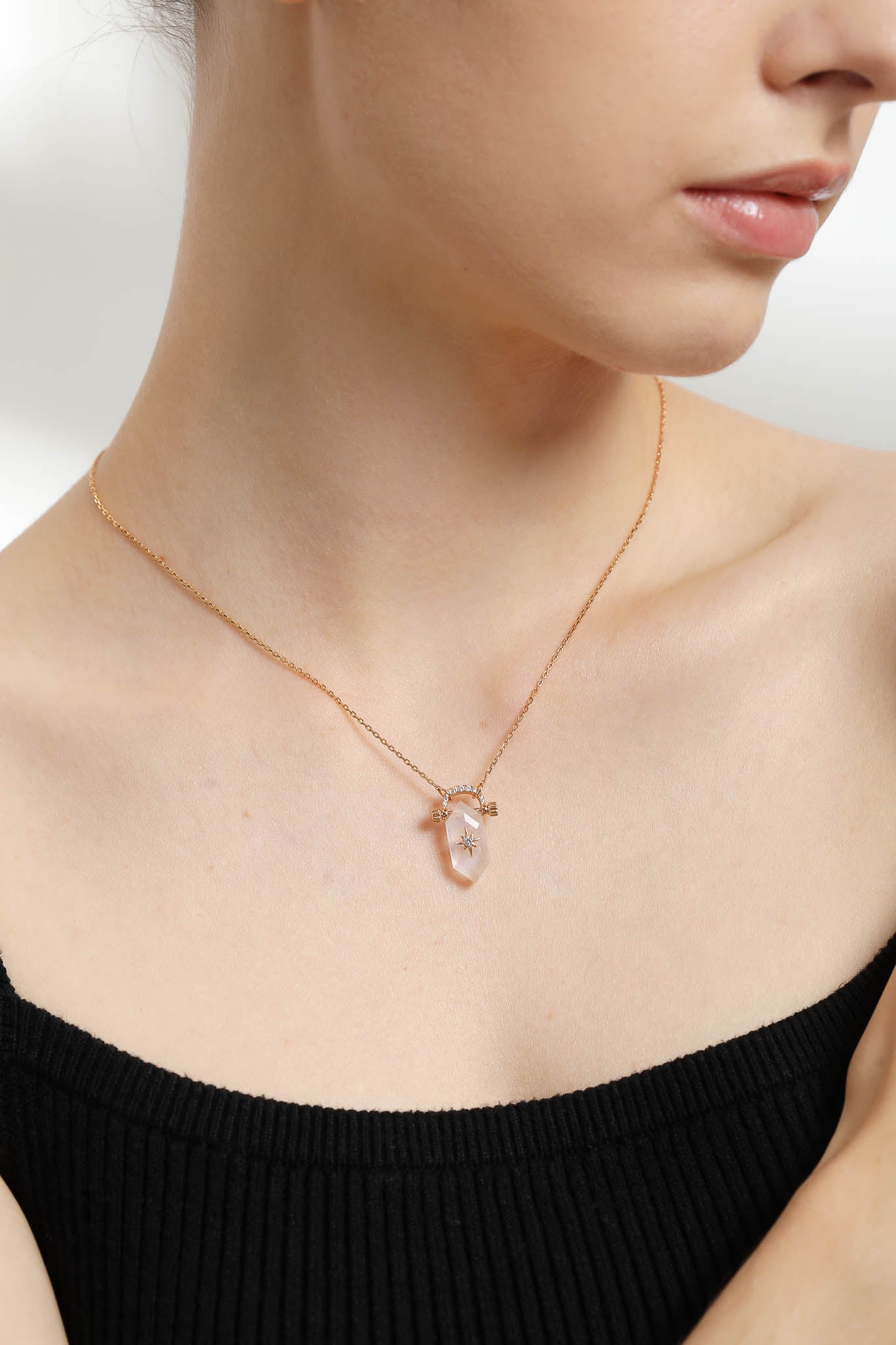 Hexagon Moonstone Gold Necklace - Talisman