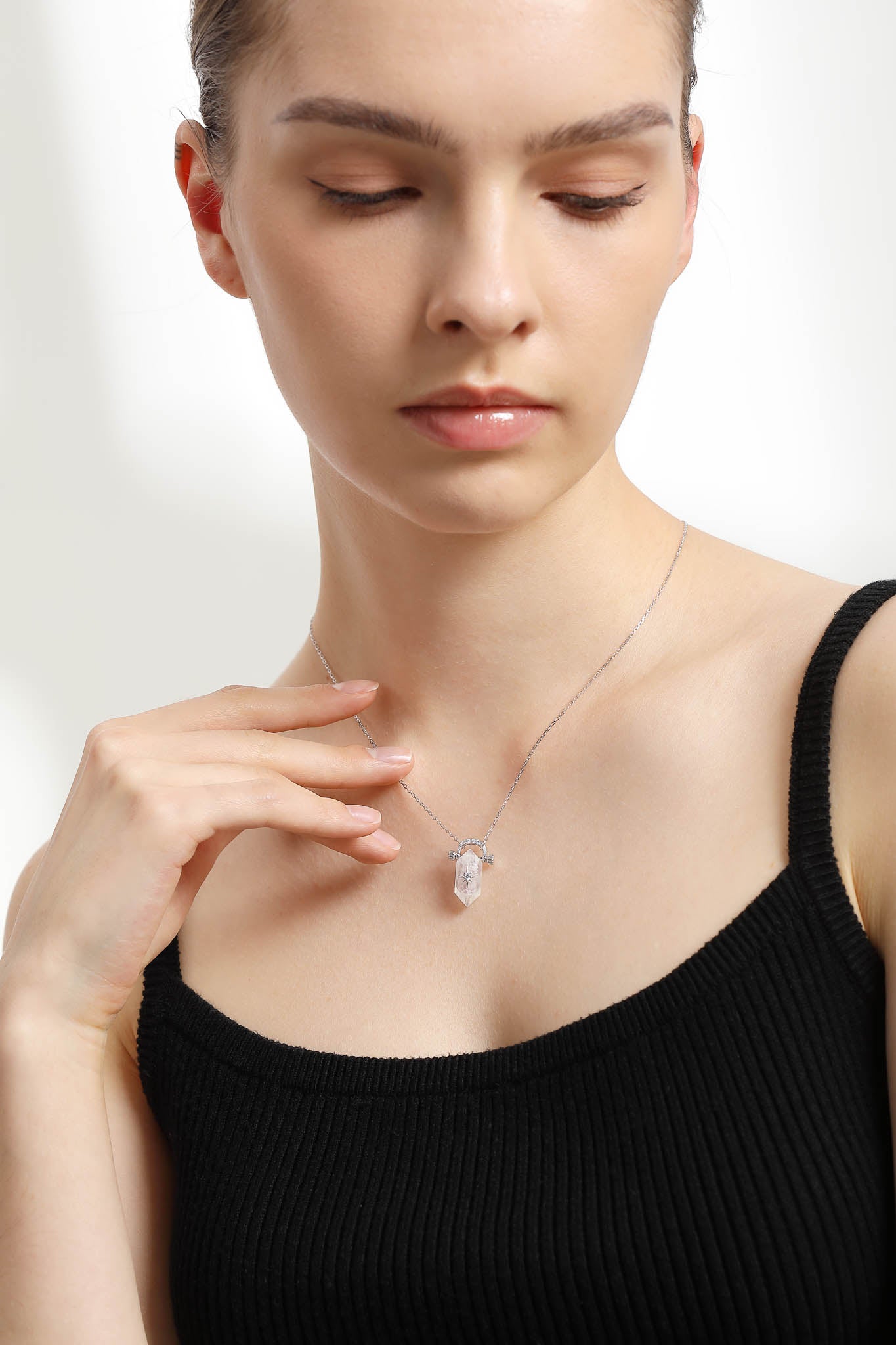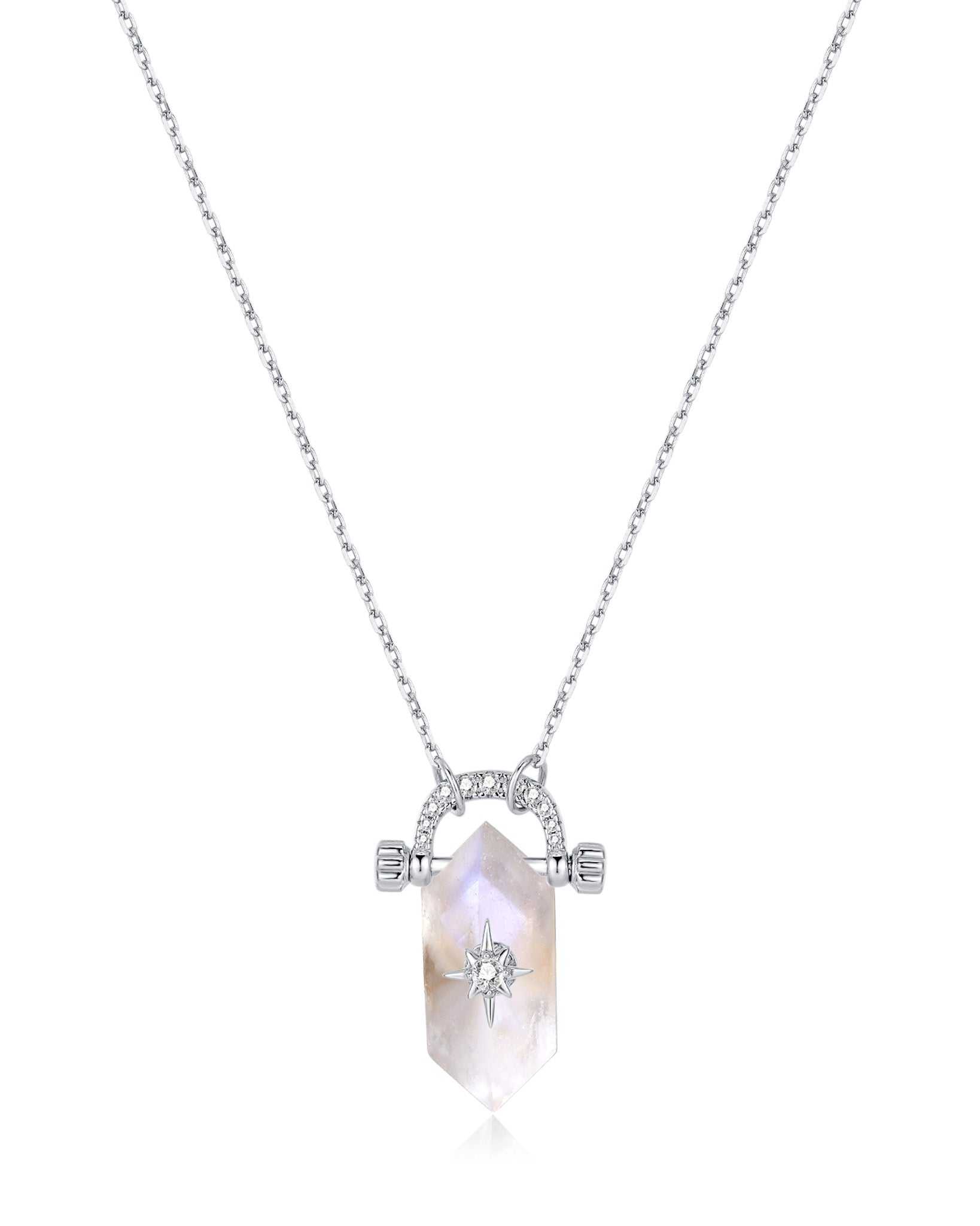 Moonstone is a stone that symbolizes love and new beginnings. This pendant features a practical horseshoe shackle design, allowing you to easily unscrew the pin, slide it onto your chosen chain, and secure it back in place.