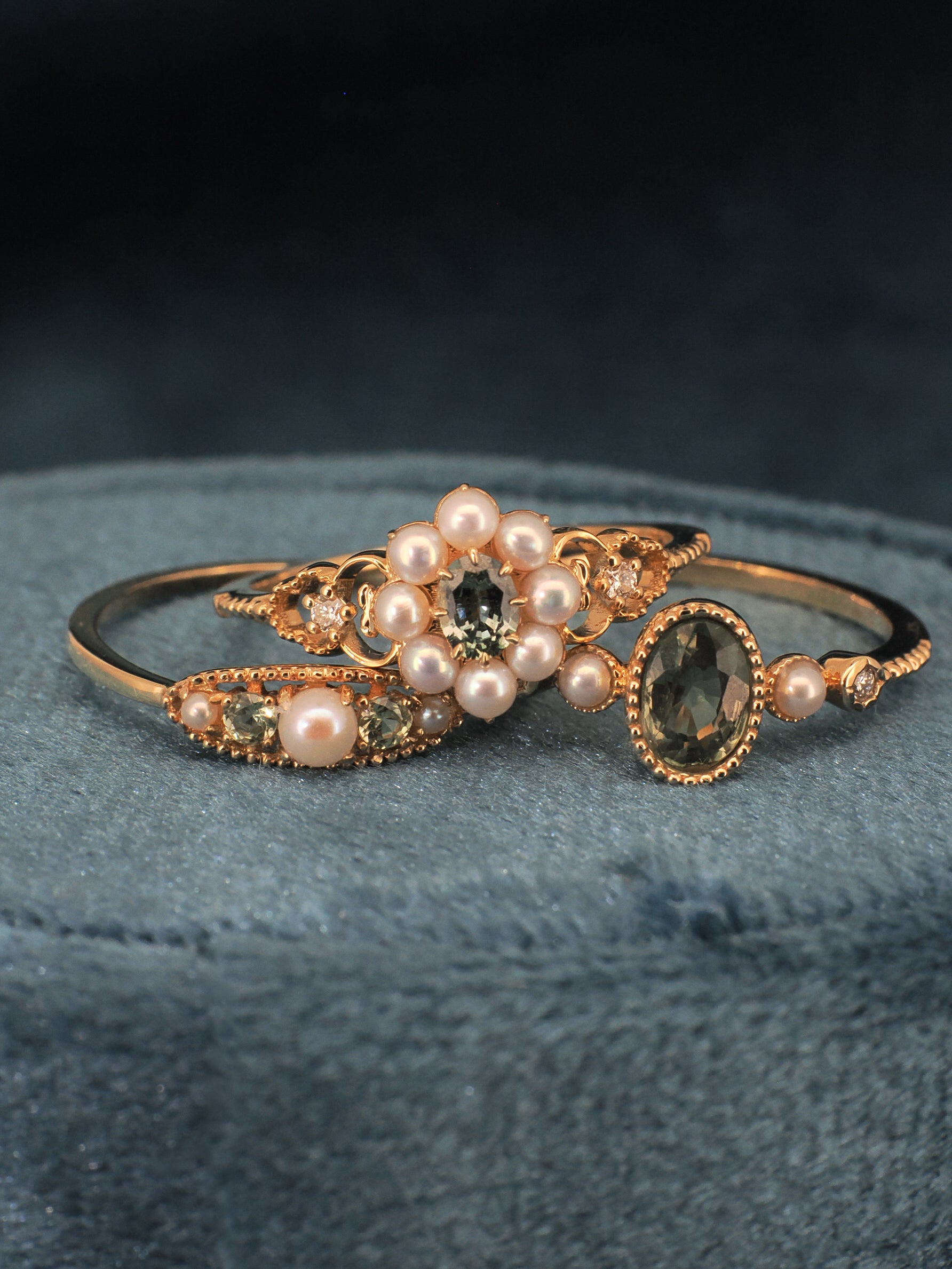 聖誕系列飾以夢幻的新月及繁星,與月亮石及珍珠交織出復古優雅的設計。